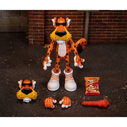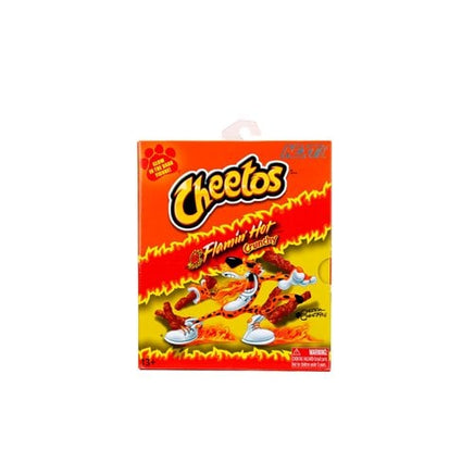 From your favorite crunchy snack line, Cheetos, comes the iconic Chester Cheetah with hot and spicy glow-in-the-dark deco! This Cheetos Chester Cheetah Flamin' Hot Glow-in-the-Dark 6-Inch Action Figure features stylish kicks, sleek shades, and paws covered in Cheetle (Cheeto dust - from all the obvious munching)! Accessories include a realistic-sized Cheeto, a bag of Flamin' Hot Cheetos, 2x alternate hands, and an alternate head. This fully articulated action figure comes in unique Flamin' Hot Cheetos packaging. Remember, it's not easy being cheesy! Ages 13 and up.