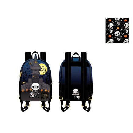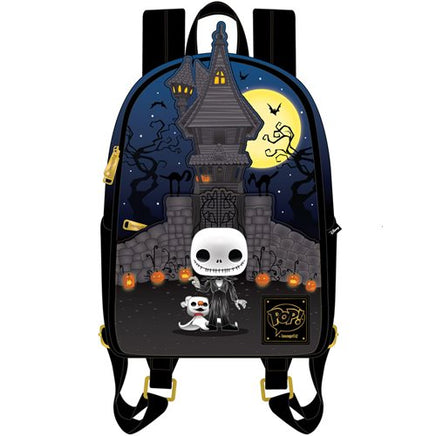 Show off your The Nightmare Before Christmas fandom with this The Nightmare Before Christmas Pop! by Loungefly Jack Skellington House Mini-Backpack! It is made of faux leather and features a top zipper closure and front zippered pocket, adjustable straps, matching themed lining, applique, embroidered, zipper charm, and printed details. This mini-backpack measures approximately 9-inches wide x 12-inches tall x 4 1/2-inches deep. This style would be a great gift for any Jack Skellington fan! Ages 8 and up.