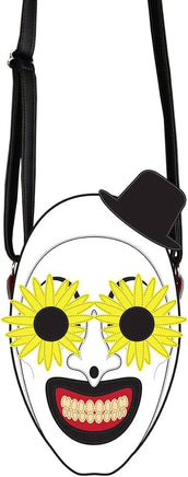 This twistedly stylish purse is made with high-quality Vegan Leather and features the unmistakable mug of Art the Clown—this time with a floral twist. His signature smirk and top hat are made in a layered design, and the bag features removable flower-shaped glasses, which are a magnetic keychain-style attachment, so you can wear the bag with or without his accessory.